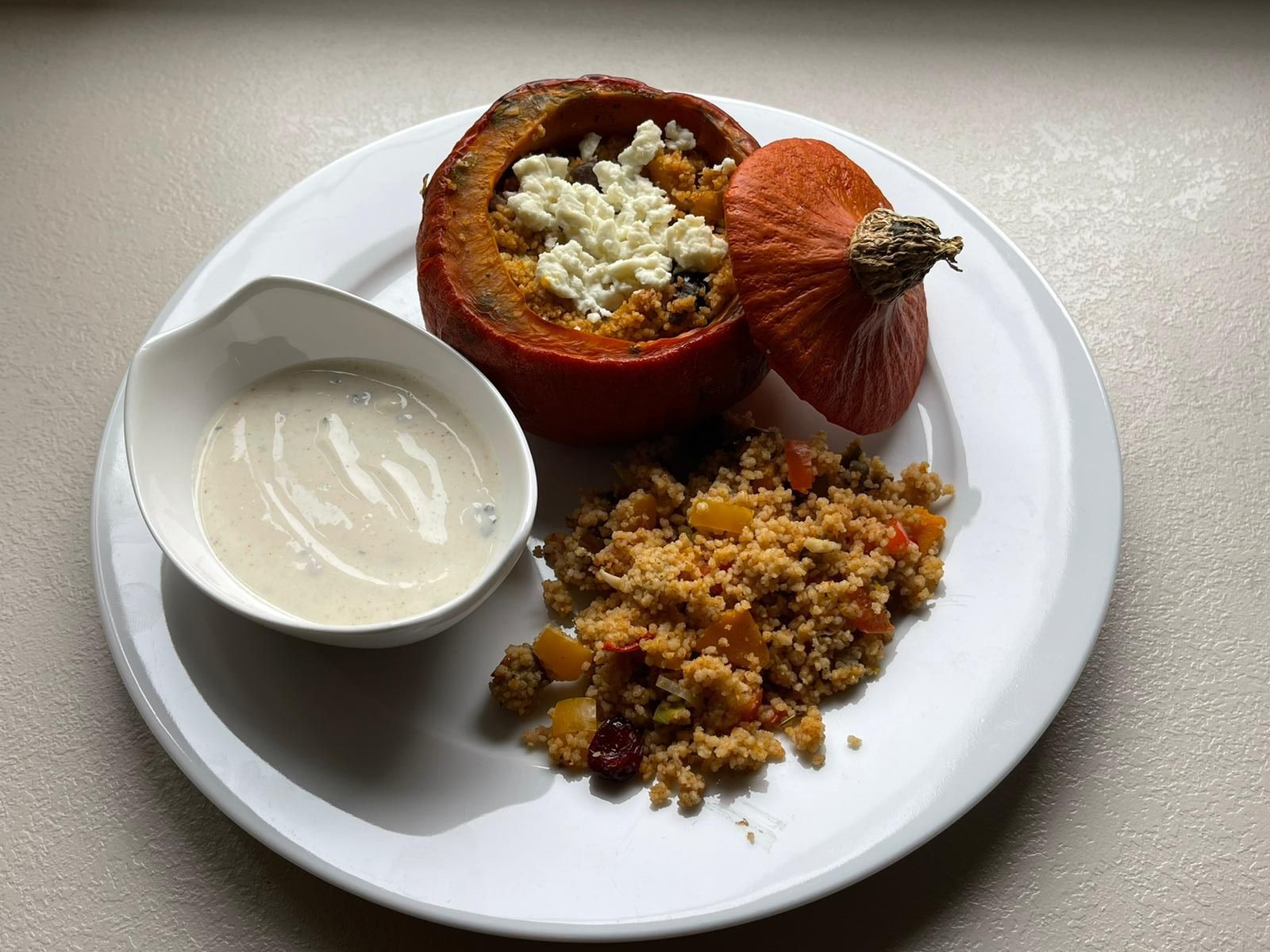 Angeboten wird immer ein vegetarisches und ein Fleisch- oder Fischgericht.